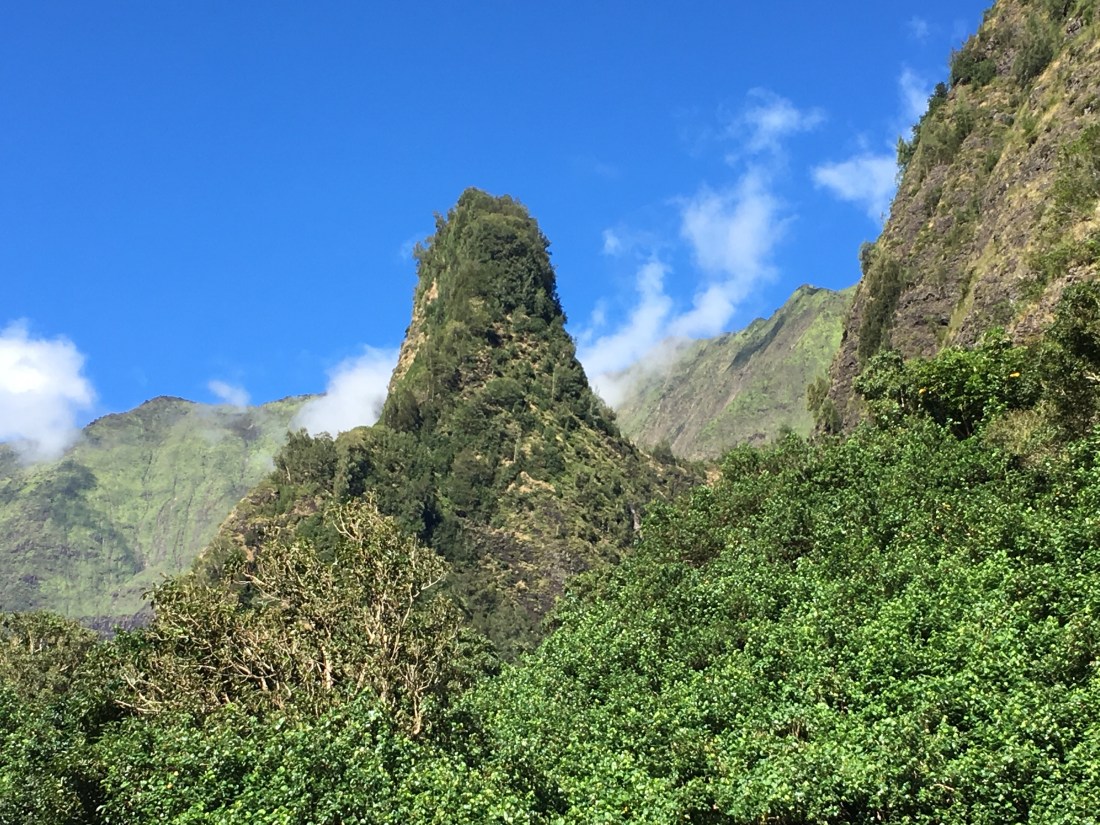 This past December, driving on the Hawaiian Island of Maui, we “discovered” the lovely Iao Valley. We remarked that we had missed it on previous visits to the island. But a few weeks after returning home, while paging through albums of old photographs taken at a time before digital photography was at everyone’s finger tips, when rolls of film were actually placed inside cameras, I found a picture of the iconic “Iao Needle” that I had taken in 2001 which is almost identical to the picture taken with my phone in December.